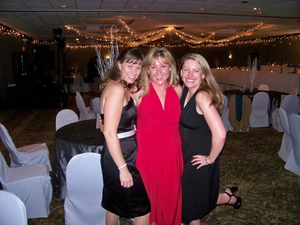 Shenanigans at our friend Kerri’s wedding. Katie – stunning in red – with our friend Maureen on the left and yours truly kicking up her heels…